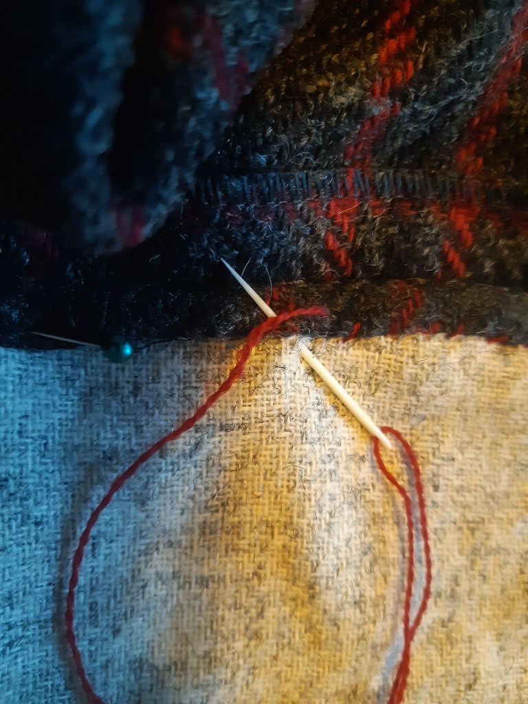 The original hood was made of one layer of fabric. I prefer to line my hoods, I find that more comfortable, but that is just me. Also, this plaid is a little bit too modern, but I am just going to go ahead and sew.