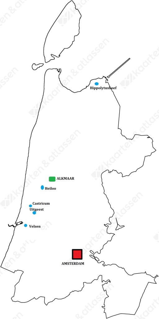 The map on the left is where my home province is situated in The Netherlands. The map on the right shows you the province in detail and in red our capitol Amsterdam, in green Alkmaar, where I was born… I will stop saying that, you know that by now.